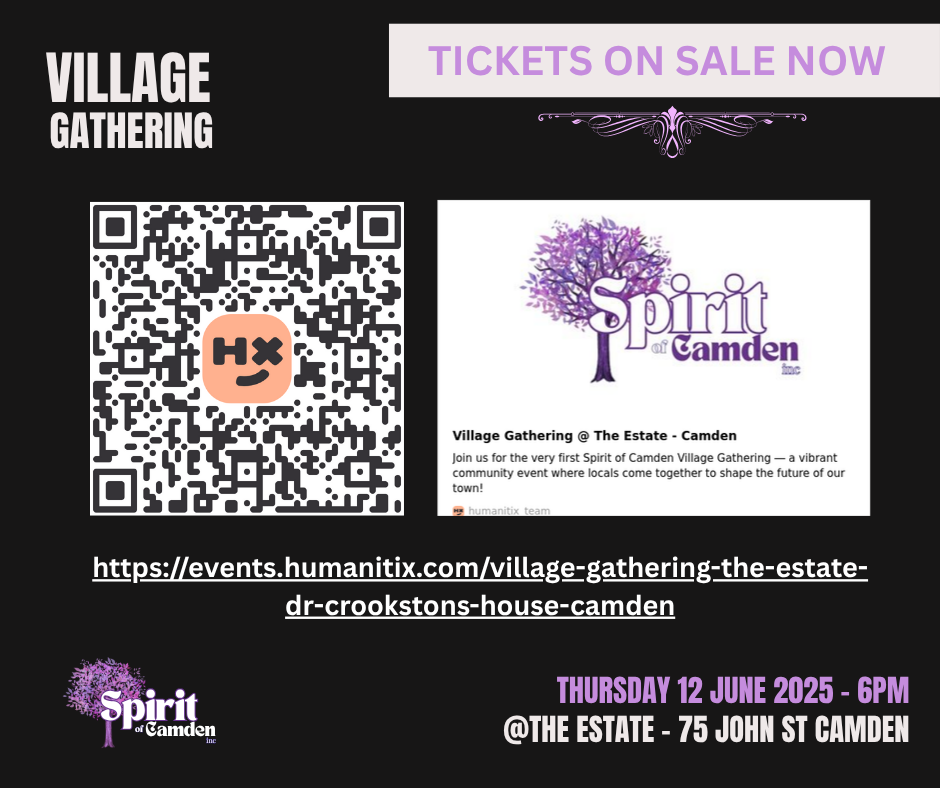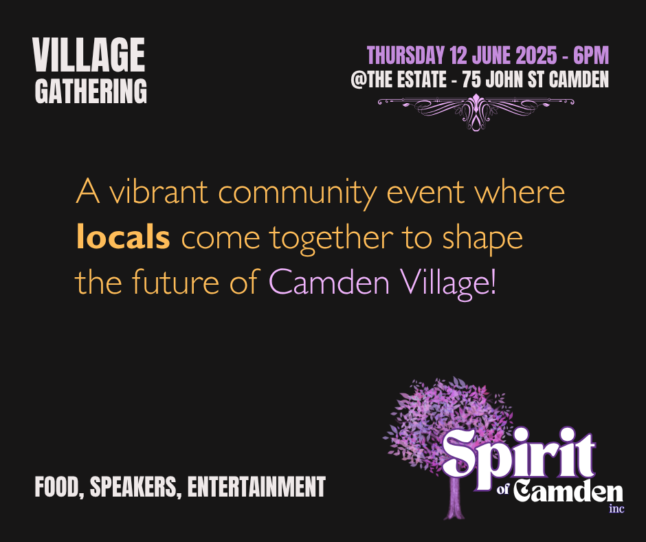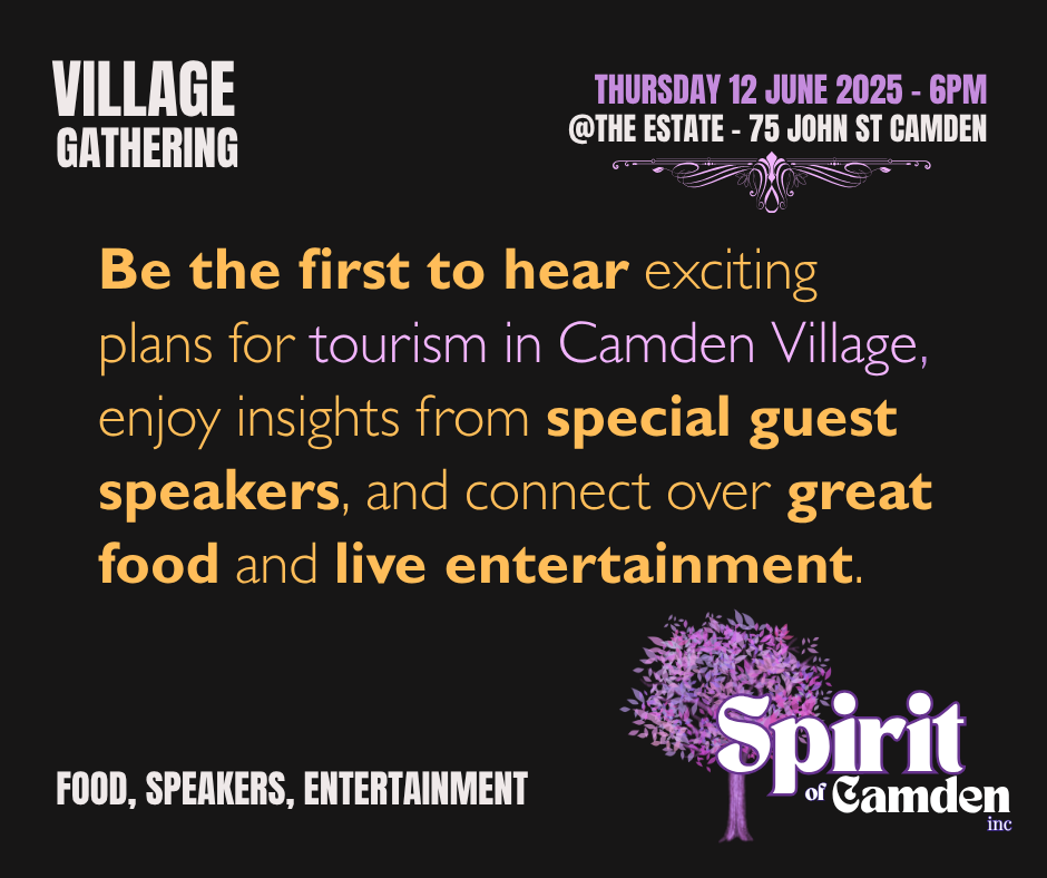Join us for the very first Spirit of Camden Village Gathering — we have created a vibrant community event where we can come together to shape the future of our town! Be the first to hear exciting plans for tourism in Camden Village, enjoy insights from special guest speakers, and connect with locals over great food and live entertainment. Whether you’re a business owner, creative, volunteer, or proud local, your voice matters. Help us put Camden Village on the map — and have a great time doing it!